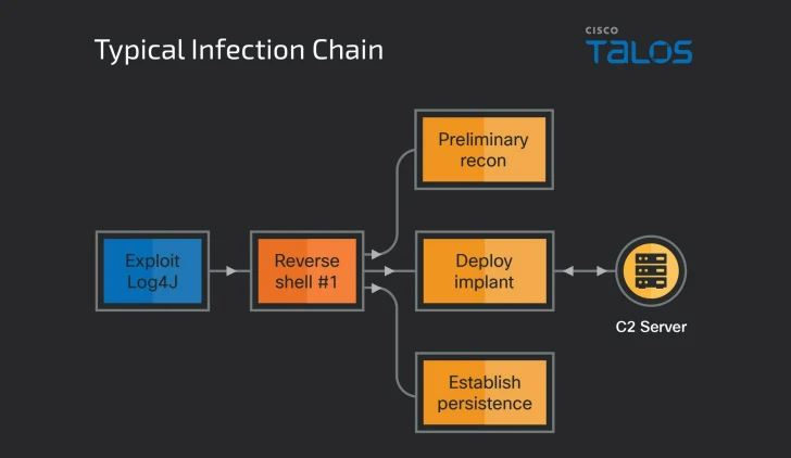 Attack chains involve the exploitation of CVE-2021-44228 (aka Log4Shell) against publicly-accessible VMWare Horizon servers to deliver NineRAT. Some of the prominent sectors targeted include manufacturing, agriculture, and physical security.