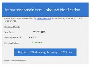 An example of an email with an “audio message” alert. Source: GreatHorn.