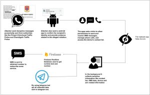 Within these messages, there’s typically a request for the recipient to download an application called “Vahan Parivahan.” This application supposedly serves to confirm the recipient’s identity and provide evidence related to the alleged violation. Figure 1 shows WhatsApp messages received by victims. However, unbeknownst to the recipients, the linked APK file contains malicious software designed to steal information from Android devices. This infostealer malware is engineered to infiltrate devices discreetly and compromise sensitive data without the user’s awareness. The malware engages in billing fraud by sending messages to specific phone numbers. In Figure 2, the attack flow of this malware campaign is depicted.
