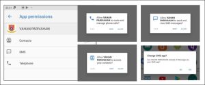 - It initiates a request for various permissions. These permissions encompass the ability to send and receive SMS messages, manage phone calls, and access the device’s contact list.