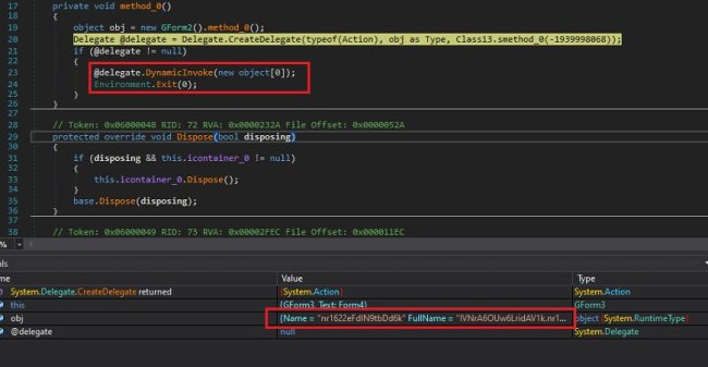 After creating the thread pool, the loader then uses the InvokeMember() function to inject and execute the ransomware code into Aspnet Compler.exe.