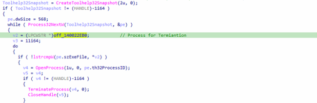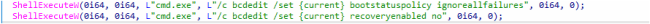 The second thread will modify the Boot Configuration, and terminates some of the hardcoded processes.