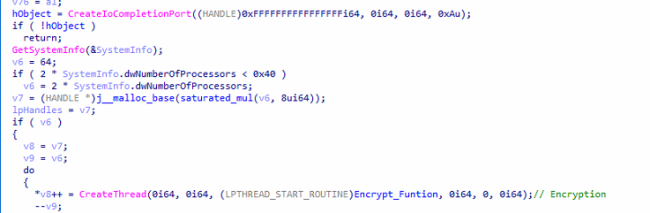 Encryption threads are created based on the number of existing processors, with a maximum limit of 64 threads.