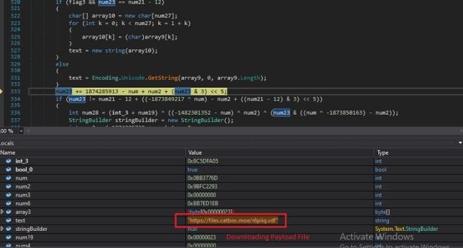 During the analysis of .NET payload, it was discovered that it downloads another encrypted VDF payload from the “hxxps://files.catbox.moe/r6piiq.vdf, which is encrypted with AES Cipher – As shown in the figure below.