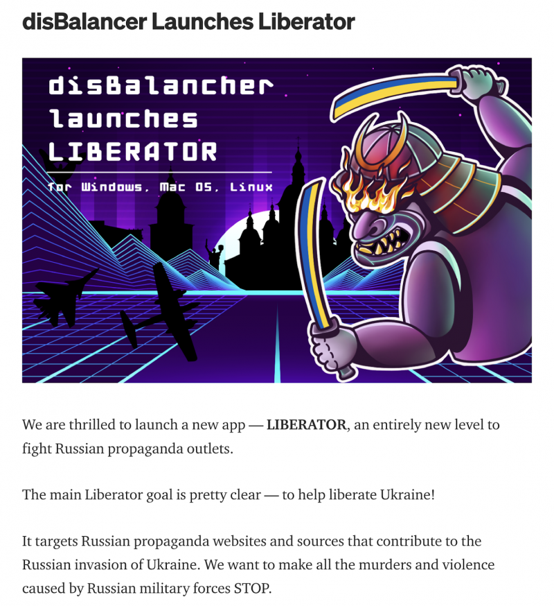 “A quick look at disBalancer’s website shows that the actor uses similar language to the malicious message on Telegram…and promises to target Russian sites with the stated goal of helping to ‘liberate’ Ukraine,” according to Cisco’s writeup.