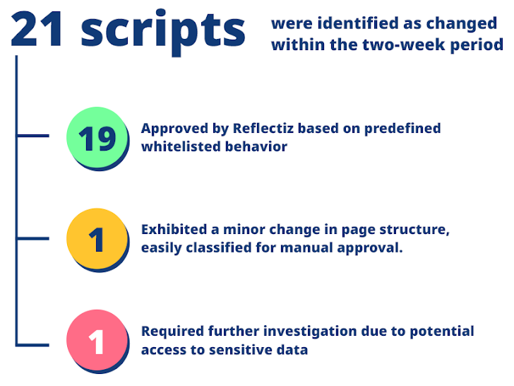 - Reflectiz identified a significant number of script changes (30% in just two weeks) highlighting the need for continuous monitoring.