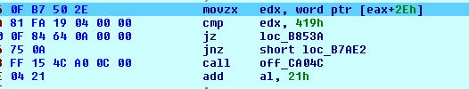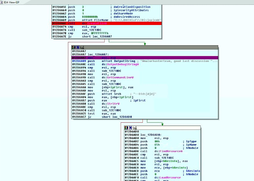Fig 9. Call to Process32NextW () using jz instruction