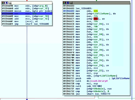 Fig 4. Xor Loop and API resolution