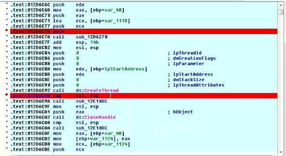 Fig 5. Call to CreateThread()