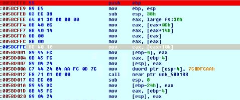 Fig 6. The address is loaded from PEB