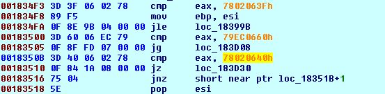 Then it enumerates running processes using Process32First() and process32Next(). It calls APIs using ‘je’ instruction and address is pushed onto the stack which is executed after API call. The call is replaced with ‘push’ and ‘jz’ or ‘je’ instruction.