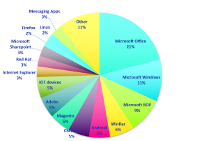 According to researchers (see chart below) Microsoft products made up a whopping 47 percent of the requests, compared with, say, internet of things (IoT) exploits, which only accounted for 5 percent.