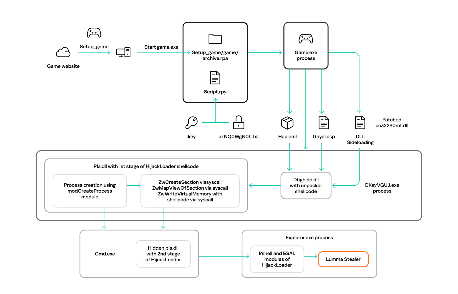 CastleLoader is not the only loader that’s being used to distribute Lumma Stealer. Campaigns observed as early as March 2025 have leveraged another loader dubbed RenEngine Loader, with the malware propagated under the guise of game cheats and pirated software like CorelDRAW graphics editor. In these attacks, the loader makes way for a secondary loader named Hijack Loader, which then deploys Lumma Stealer.