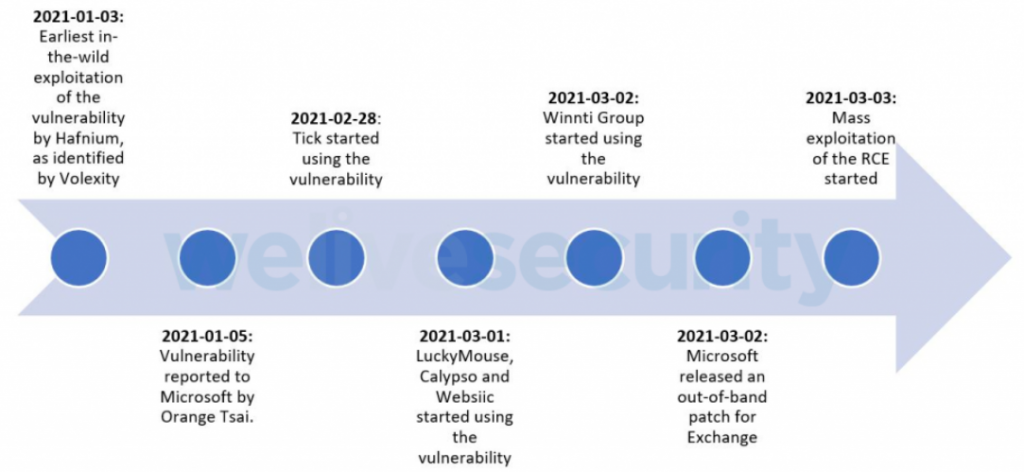 ESET has documented a raft of activity targeting the four vulnerabilities, including multiple zero-day compromises before Microsoft rolled patches out.