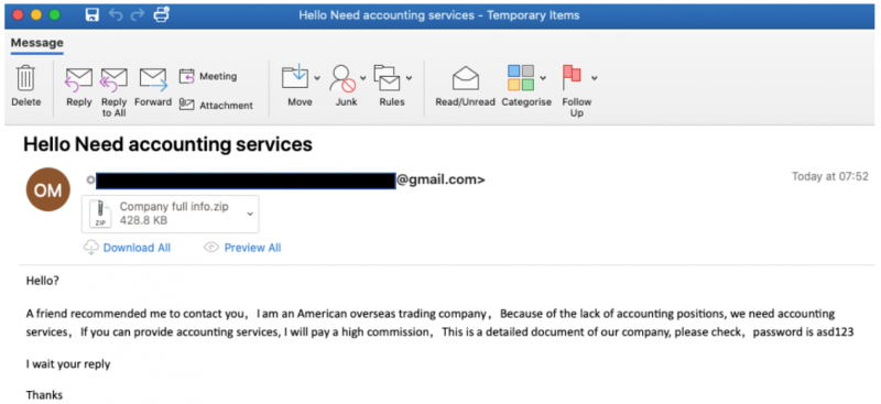 Another Gmail-hosted attack in February tries to induce users to access zipped MS Word documents by entering their passwords. Once opened, macros were enabled it delivered Xorist ransomware.
