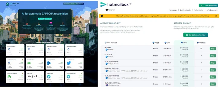 - Hotmailbox.me for selling fraudulent Microsoft Outlook accounts