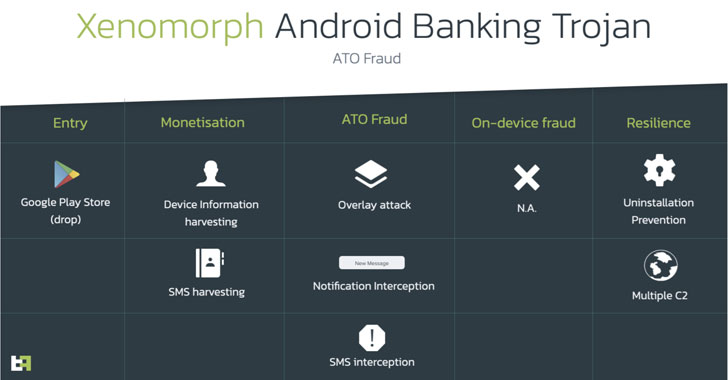 Dubbed Xenomorph by Dutch security firm ThreatFabric, the in-development malware is said to share overlaps with another banking trojan tracked under the moniker Alien while also being “radically different” from its predecessor in terms of the functionalities offered.