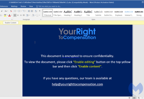 Malwarebytes observed that the attack began with a .ZIP file containing “Compensation manual.doc.”