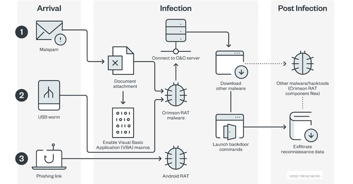 The threat actor is also known to be consistent in its modus operandi, with the attacks predominantly banking on social engineering and a USB-based worm as entry points. Among common elements in the group’s arsenal is a Windows backdoor called CrimsonRAT that allows the attackers extensive access to compromised systems, although recent campaigns have evolved to deliver ObliqueRAT.