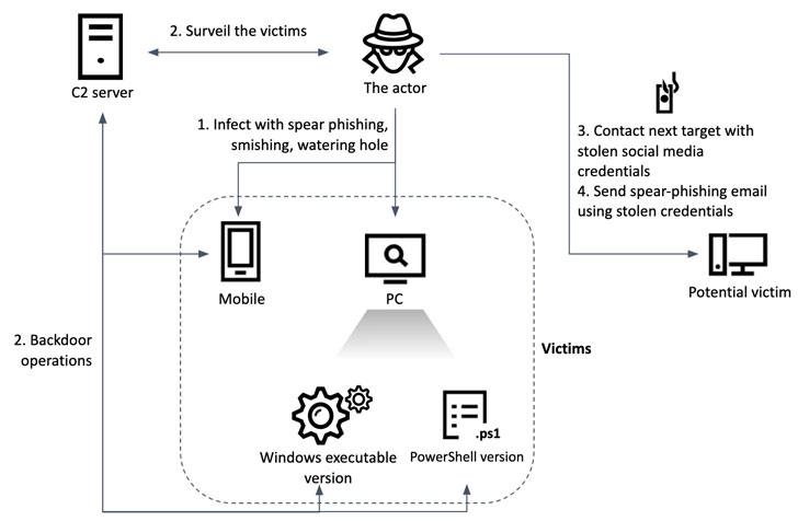 “The actor utilized three types of malware with similar functionalities: versions implemented in PowerShell, Windows executables and Android applications,” the company’s Global Research and Analysis Team (GReAT) said in a new report published today. “Although intended for different platforms, they share a similar command and control scheme based on HTTP communication. Therefore, the malware operators can control the whole malware family through one set of command and control scripts.”