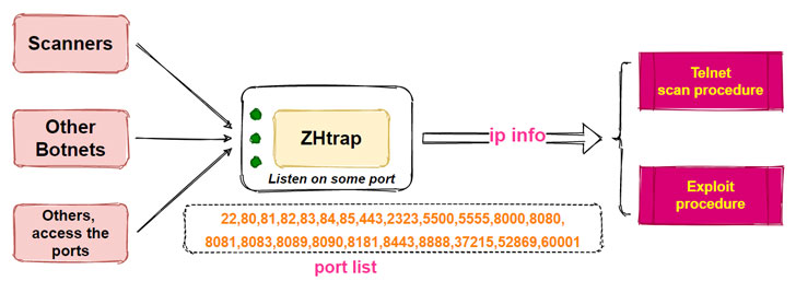 Noting that the attacks began from February 28, 2021, the researchers said ZHtrap’s ability to turn infected devices into honeypots marks an “interesting” evolution of botnets to facilitate finding more targets.