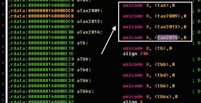 In particular, Kremez observed the sample going after files bearing the “.tax,” “.tax2009,” “.tax2013” and “.tax2014” extensions.