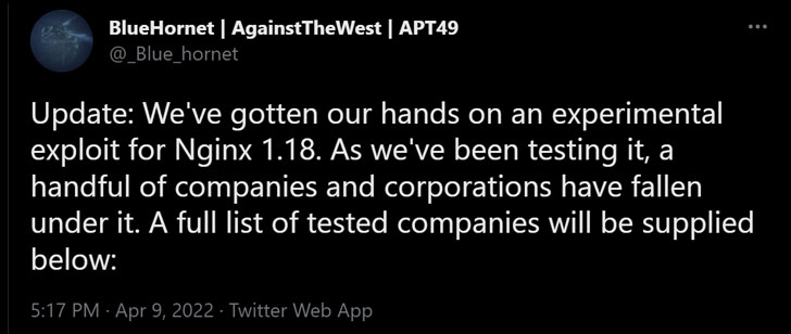 The disclosure comes after details of the issue emerged in the public domain over the weekend when a hacktivist group called BlueHornet said it had “gotten our hands on an experimental exploit for NGINX 1.18.”