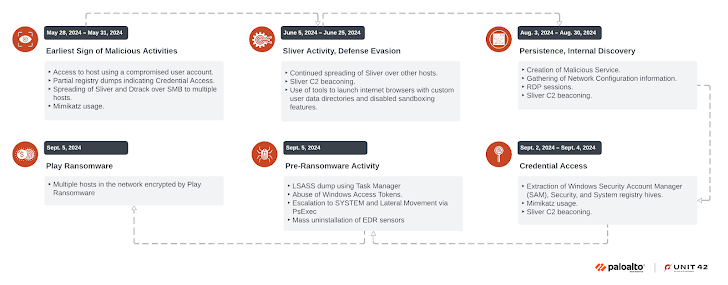 “These remote tools continued to communicate with their command-and-control (C2) server until early September,” Unit 42 said. “This ultimately led to the deployment of Play ransomware.”