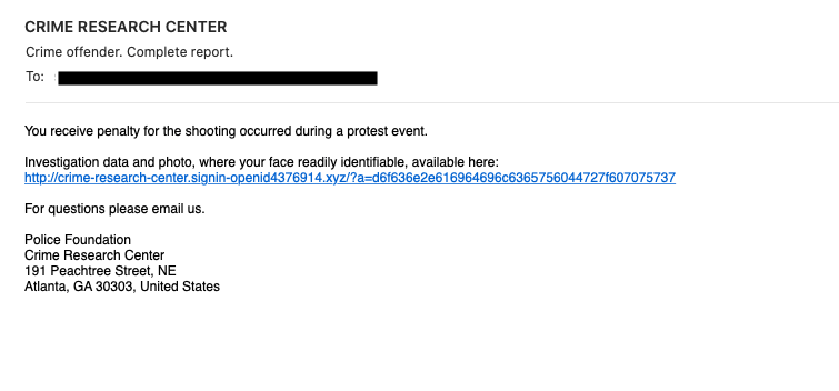 Security researchers came across a series of odd protest-themed spam email messages that appeared to target the Atlanta Police Foundation.