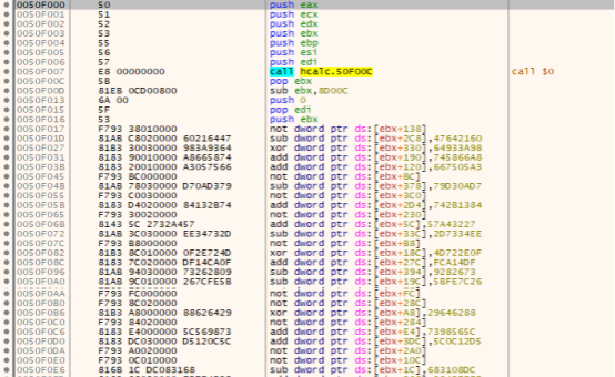 Fig 4: Part of a routine that decrypts Expiro code