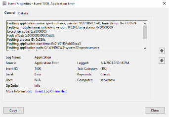 This can be confirmed by looking at the logs captured by Windows Operating system / Windows Application Event logs.
