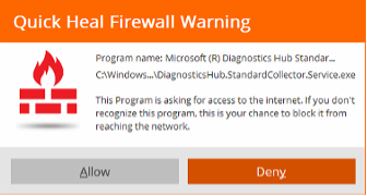 1.Quick Heal firewall shows a pop-up: