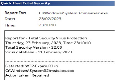 Quick Heal provides protection against all known variants of Expiro and detects it with following signatures: –