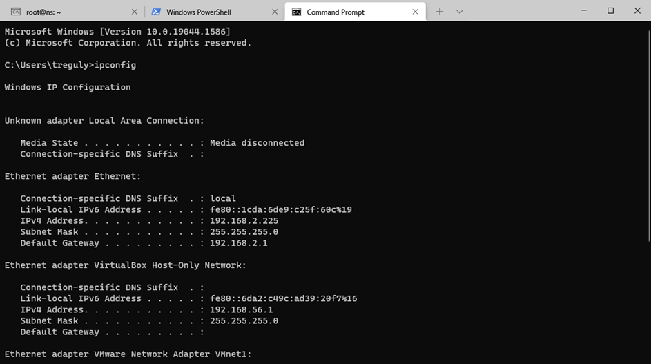 Step 1: ipconfig output for comparison