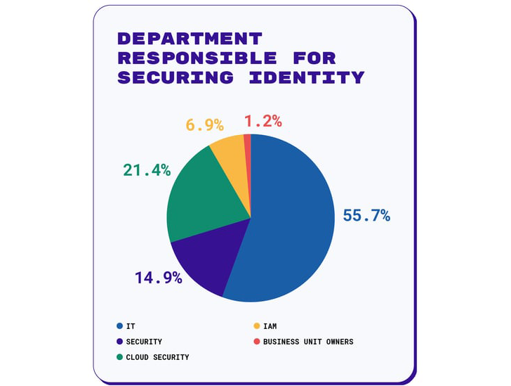 It is not clear that organizations understand what identity security responsibility entails for the hybrid and multi cloud reality. Despite most organizations using on average 2.5 public clouds, the IT team (56%) was singled as being primarily responsible for ensuring the identity security for the organization across multiple environments. This may reflect identity still being seen as limited to access provisioning and deprovisioning. According to Jason Martin, Permiso Co-CEO and Co-Founder, this finding could be explained by “identity security traditionally having fallen under the general responsibilities for IT who are seen as stewards of IT systems, which includes provisioning access and securing identities. Only in a minority of organizations are we seeing the security department as the primary stakeholder for securing identities.”