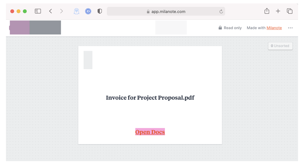 If the person clicks the button, they’re taken to a page hosted in the Milanote service: