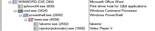 The two dropped executables into the %tmp% folder are ‘fakerror.exe’ and ‘injector (automatic).exe’.