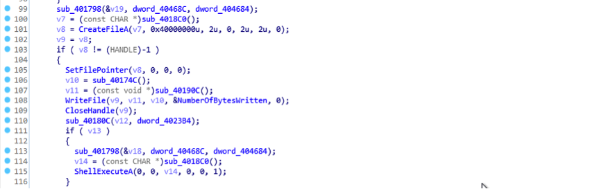 The ‘mess.exe’, upon execution, drops the executables present in RCDATA to the %tmp% folder and executes them using ‘ShellExecuteA’.