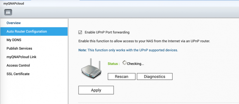 - Disable the UPnP function of the QNAP NAS. Go to myQNAPcloud on the QTS menu, click the “Auto Router Configuration,” and unselect “Enable UPnP Port forwarding.”