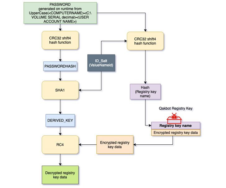 Cybersecurity researchers have decoded the mechanism by which the versatile Qakbot banking trojan handles the insertion of encrypted configuration data into the Windows Registry.
