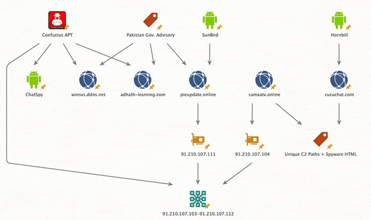 Interestingly, the C2 infrastructure shared by Hornbill and SunBird reveals further connections with other stalkerware operations conducted by the Confucius group — including a publicly-accessible 2018 Pakistani government advisory warning of a desktop malware campaign targeting officers and government personnel — implying that the two tools are used by the same actor for different surveillance purposes.