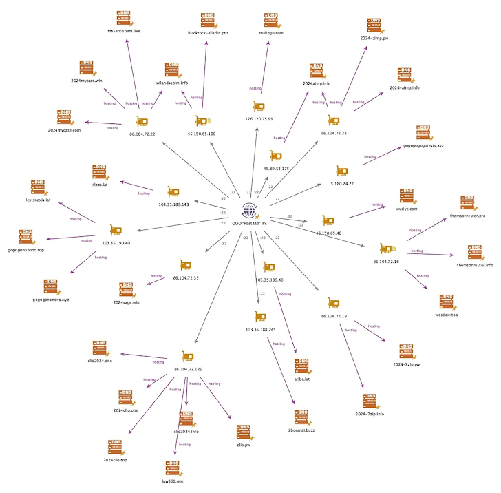 The two clusters of potential FIN7 activity “indicate communications inbound to FIN7 infrastructure from IP addresses assigned to Post Ltd (Russia) and SmartApe (Estonia), respectively,” Team Cymru said in a report published this week as part of a joint investigation with Silent Push and Stark Industries Solutions.