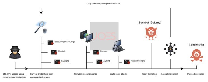 The intrusion is said to have taken place in February 2022, with the attackers making use of post-exploitation tools such as ADFind, NetScan, SoftPerfect, and LaZagne. Also employed is an AccountRestore executable to brute-force administrator credentials and a forked version of a reverse tunneling tool called Ligolo.