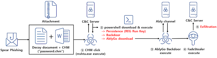 In the latest intrusion detected by ASEC, the email comes bearing a Microsoft Compiled HTML Help (.CHM) file — a tactic first reported in March 2023 — that, when clicked, contacts a remote server to download a PowerShell malware known as Chinotto.