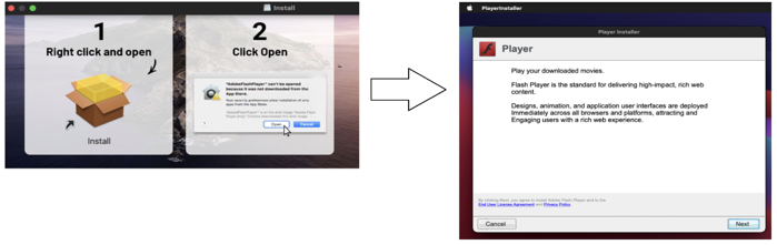 The bash files download the second-stage adware payload which lures the victim to generally install a fake version of flash player as shown below.