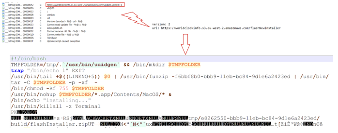 Upon execution, the binary downloads a yaml file which points to the bash script named “flashNewInstaller” hosted again in Amazon S3 as shown below.