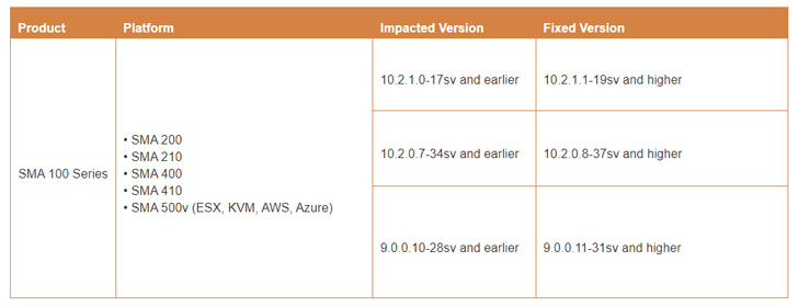 SonicWall credited Wenxu Yin of Alpha Lab, Qihoo 360, with reporting the security shortcoming, which impacts SMA 100 Series — SMA 200, SMA 210, SMA 400, SMA 410, and SMA 500v — running the following versions: