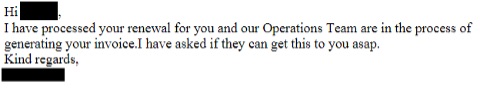 Next came some foot-tappingly stern language to ratchet up the urgency, as shown in the next screen grab. “I appreciate how busy you are,” the crooks crooned, among other things that sounded like legitimate accounting blah-blah-blah, “but wondered if you could give me an update regarding the renewal?”